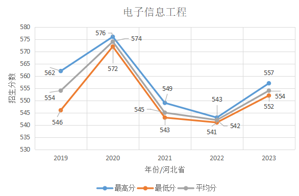 下面以河北省、河南省考生为例(其他省/市录取分数附在后面),分析外省/市生源质量变化趋势。