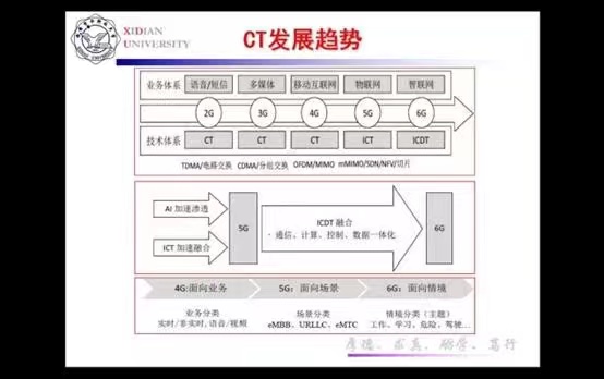 从1G的语音小容量通话到目前5G的三大应用场景及仍在探索中的打通虚实空间泛在智联的6G,基础科学的进步是通信技术发展的基石,对速度和容量的追求是通信系统发展的驱动力。目前随着5G系统的商用,实现真正意义上的无处不在的网络连接(万物连接)成为移动通信系统追求的终极目标。6G的新需求是实现万物智联、虚实融合。其核心领域是实现新的空口,即寻求无线通信新维度扩展香农极限,研究新频谱,提升传输速率;其融合领域旨在探索ICDT融合的基础理论,解决通信、计算、存储一体化科学问题,构建通信+AI的新架构,研究新算力,提出新算法。6G网络的三个目标是甚大容量与极小距离通信、超越尽力而为与高精度通信、融合多类通信。