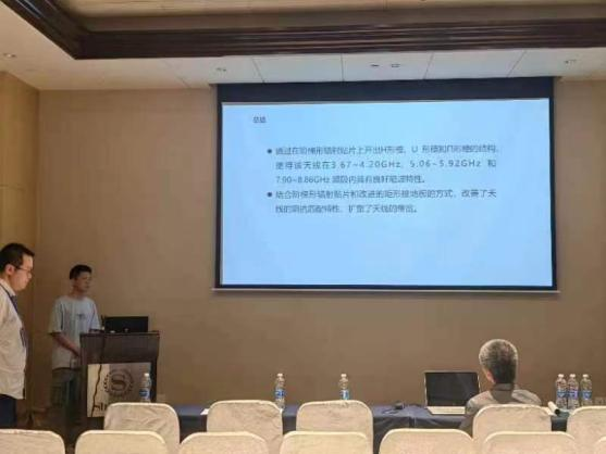 赵龙友、潘俊汝、陆筝、张慧妹、刘春丽、钮红亮、苏东蕊等同学论文被录用。在会议期间团队分别将已录用论文《一种采用锁链形去耦枝节的小型化UWB-MIMO天线设计》、《一款基于K波段的小型化MIMO天线设计》、《一种基于CPW馈电的紧凑型多频MIMO天线》、《一种结构共享的三端口UWB- MIMO天线的设计》、《一种基于基片集成波导的毫米波缝隙天线》、《适用于5G FR1频段的MIMO天线设计》以及钮红亮同学的两篇题目为《5G毫米波Franklin阵列MIMO天线设计》、《一种应用于毫米波通信的阵列天线设计》的论文在会场中分别以海报形式展出,并与参会的其他高校老师、同学针对论文内容进行讨论交流,收获颇丰。