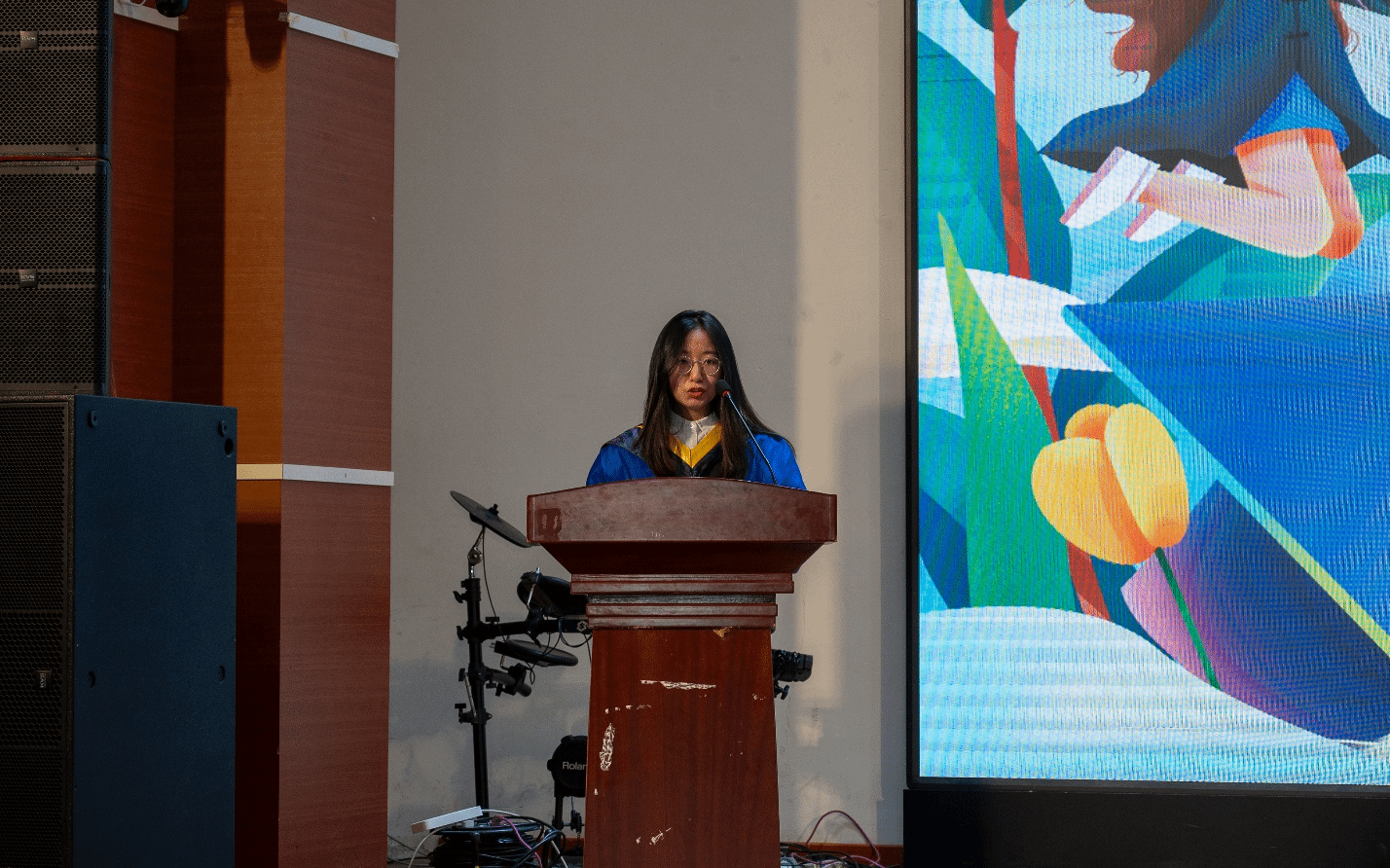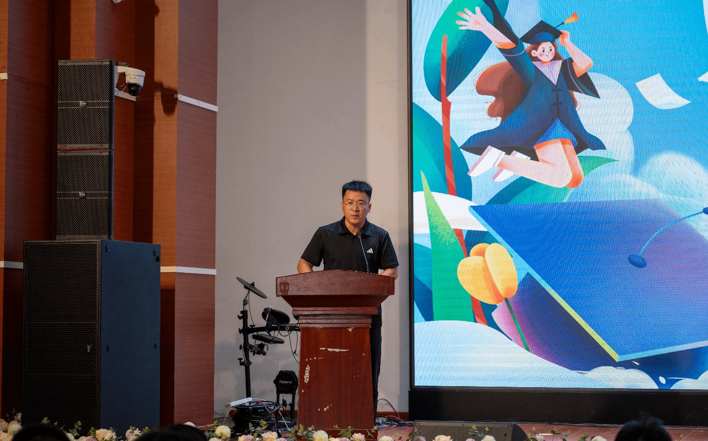 教师代表、2025届毕业生“我最喜爱的老师”杨文冬老师向全体毕业生送上了温暖的祝福和叮咛,分享了师生间难忘的情谊。