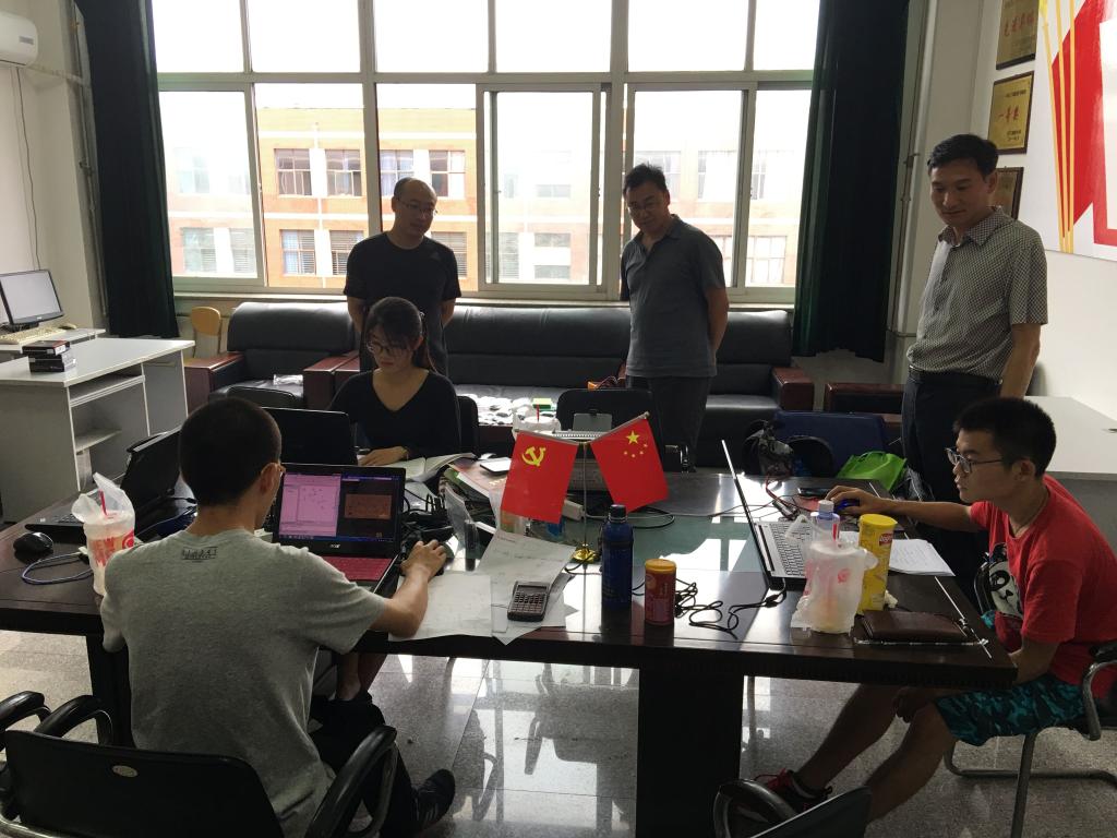 党委书记沈学利教授,院长南敬昌教授,党委副书记李玉波副教授,辅导员吴汇辞老师一行来到了位于静远楼423的实训室,看望了暑期留校参加2018年辽宁省TI杯大学生电子设计竞赛的参赛同学和指导老师,并为师生们带来了关心、问候和鼓励。