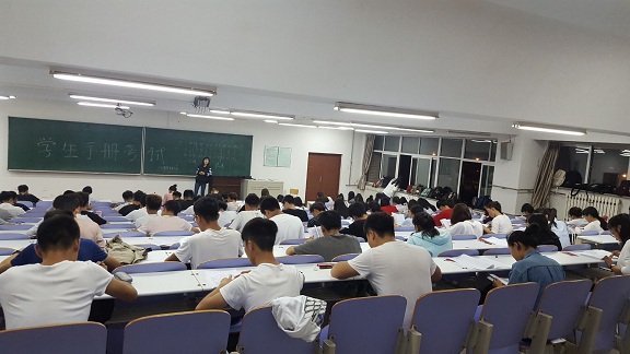 经过了集中学习与主题班会宣讲,新生完成了针对“学生手册”前两个阶段的学习,并于9月25日晚6点半,举办了学生手册考试,此次考试由电信院学生工作部主办,院大学生自律委员会协助举办。