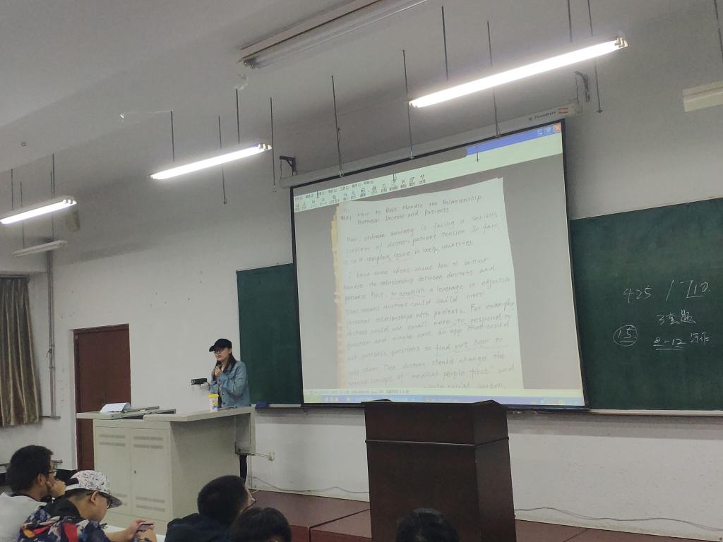 吴老师总结了前几次的写作练习情况,指出同学们在写作中要注意文章的整体把握、逻辑结构等细节,论点要鲜明、论据要准确;最后吴老师结合写作专项真题资料,通过提问的方式与同学们进行了翻译练习的互动,让同学们体会到语言写作的美感,从而减少对英语写作的畏难情绪。