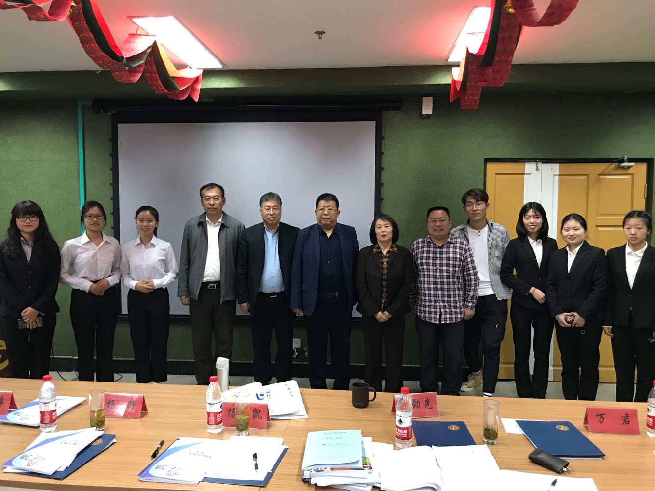 教师指导的两只队伍与评委合影