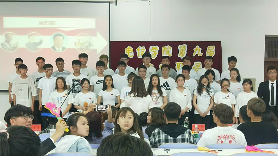 本次歌曲联唱比赛以“骄阳赤子梦,热血中国心”为主题,经过比赛的追逐,最终有八个班级获奖。比赛现场,参赛队伍表现精彩绝伦,现场热潮涌动。参赛的学生们着装统一,干净整洁,神情从容自信,歌声和谐悠扬。他们纵情高歌,唱响属于青春的梦想与旋律。一首《我和我的祖国》唱出了工大学子对祖国的热爱,一首《我的未来不是梦》触动了在场师生的心弦;“抱着梦往前飞,不逃避,不后退,你是我成功路上的堡垒”一首《最美的太阳》带给我们力量,让我们变得更加坚强;一首《黄河大合唱》的完美和声演绎出了选手的默契和实力,使得美好的旋律久久回荡在耳边。参赛同学在台上深情演唱,台下观众深受感染,随着一曲曲熟悉的旋律轻轻的哼唱。最终经评委评分,通信四班获得一等奖,计算六班田佳硕同学为最佳指挥。同学们用飞扬的歌声吟唱着难忘的岁月,用力量的翅膀演绎时代的乐章。赛场上的他们用燃烧的青春,凯歌嘹亮!
