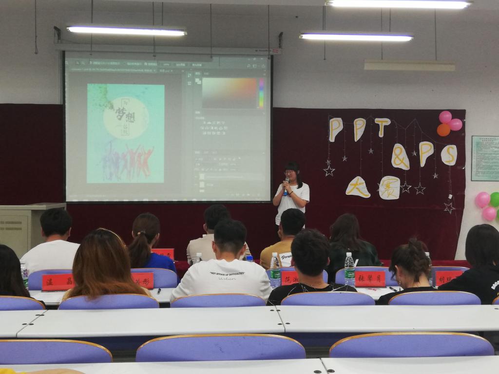 学生会主席张皓等,评委有第十三届院PPT大赛二等奖获得者马英达学长等。本次比赛让同学们了解了PPT&PS制作,也让同学们更好的了解并掌握这项大学生必备的技能。