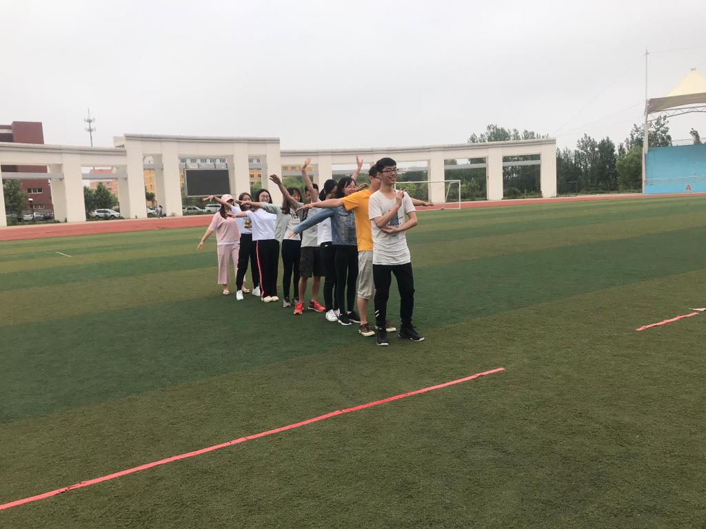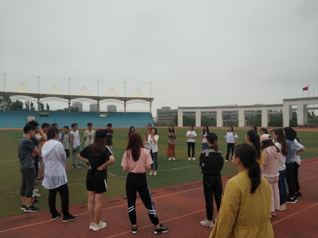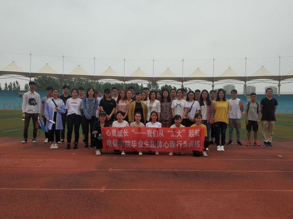 2019年6月13日上午在校区体育场针对毕业生党员在离校前开展“心灵的成长”——我们从“工大”起航团体心理行为训练活动。