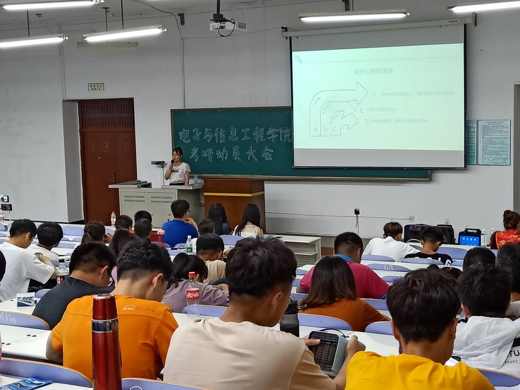 动员会在工大宣传片《底色》中拉开序幕。首先,王书记做了精彩细致的动员报告。他从考研的实际意义展开,为同学们分析考研的形势和动态,鼓励同学们选择考研为未来的路打下基础。接着从专硕与学硕的区别,全日制与非全日制的区别,国家政策以及录取流程等方面为同学们进行分析、讲解和辅导。