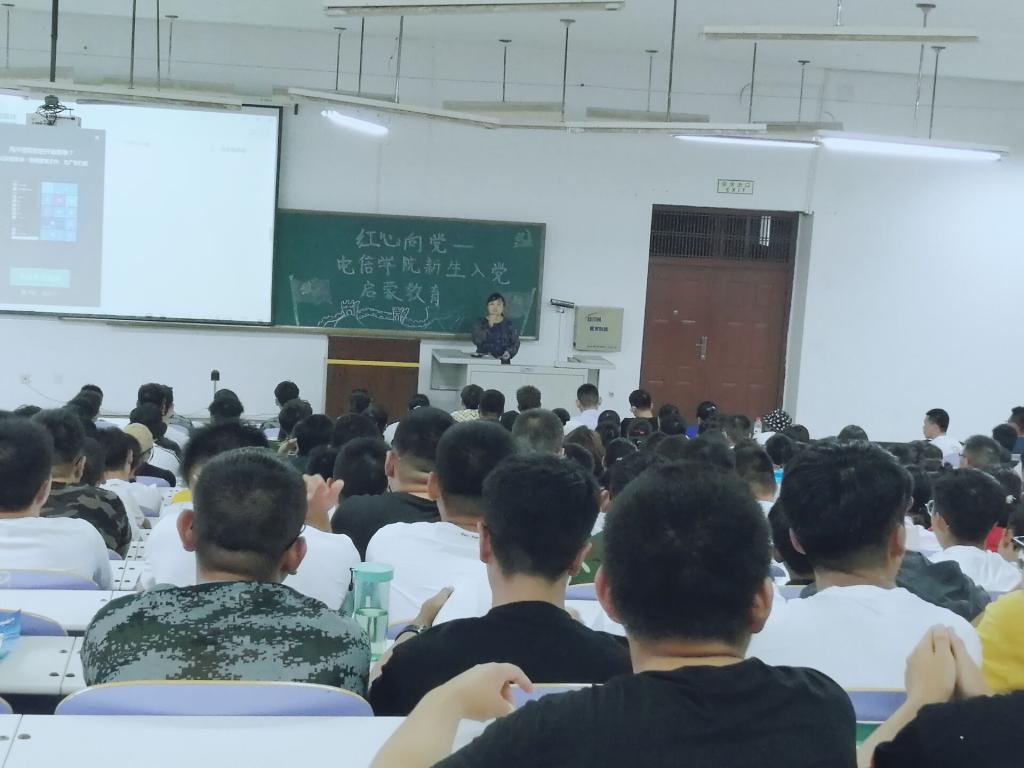 学生党支部于2019年8月31日组织新生分别在葫芦岛校区龙湾校园尔雅楼201、221教室开展入党启蒙教育主题讲座,讲座由学生党支部书记叶静老师主讲。
