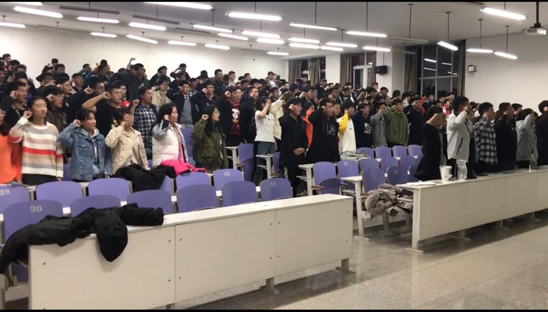 讲座伊始,侯喜章直入主题,用简明的语言描述了什么是传销以及传销的本质。同时他还介绍了“打击传销,我们在行动”活动。希望通过漫画,征文,视频等方式让同学们了解传销的危害。为了避免概念的混淆,他清晰明了地列举出直销的特点,让同学们能清楚地分清直销与传销的区别。接着,他播放了三个真实传销案例主人公的自述,同学们对于层出不穷的传销招数有了新的认识,同时他告诫同学们“要警惕所有天上掉馅饼的诱饵”。播放完视频后,侯喜章作为领宣人,带领19级全体新生宣誓,表明了学生们抵制传销行为的决心。