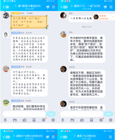 同学们在家中以极高的热情认真观看了视频,并展开了热烈的讨论。在各班讨论的过程中,同学们饱含热情,积极发言,发表学习感受,通过沟通交流,强化对思政课内容的理解,真正做到入脑入心,讨论引起了热烈反响。