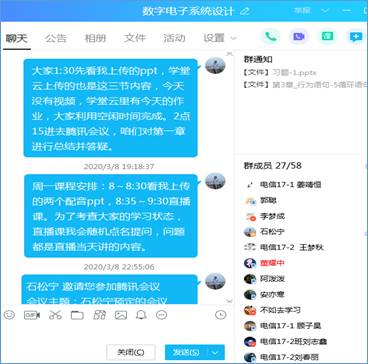 每次上课前我会通过QQ的方式通知大家我这节课的教学安排,比如:8:00~8:30观看配音PPT,8:30~9:35直播,课后作业完成学堂在线上发布的相关习题。这样学生们就能够明确自己如何学习这门课了。