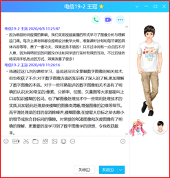 钉钉直播对于老师和学生都是第一次尝试,为了能够尽快了解直播平台的使用和保证上课顺利进行,所以在正式上课前几天,利用晚上的时间我们进行了直播的模拟测试,全面学习和了解钉钉直播平台的使用方法,这样确保了后面授课过程中即使出现小的问题也能够从容面对,快速、顺利解决,保证了授课不间断。