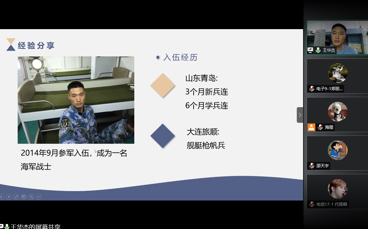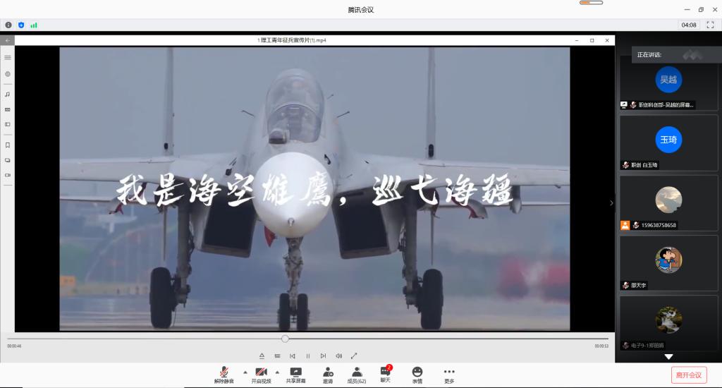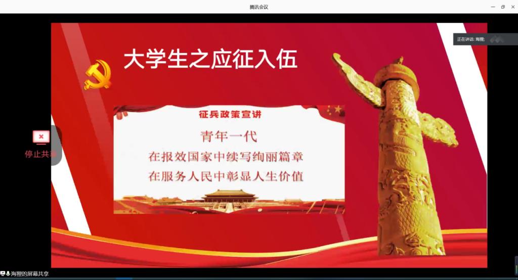于6月13日晚18:00开展线上征兵宣讲会。院党委副书记李玉波、院团委书记吴汇辞、退役学生代表王华杰以及各班班委参加会议。