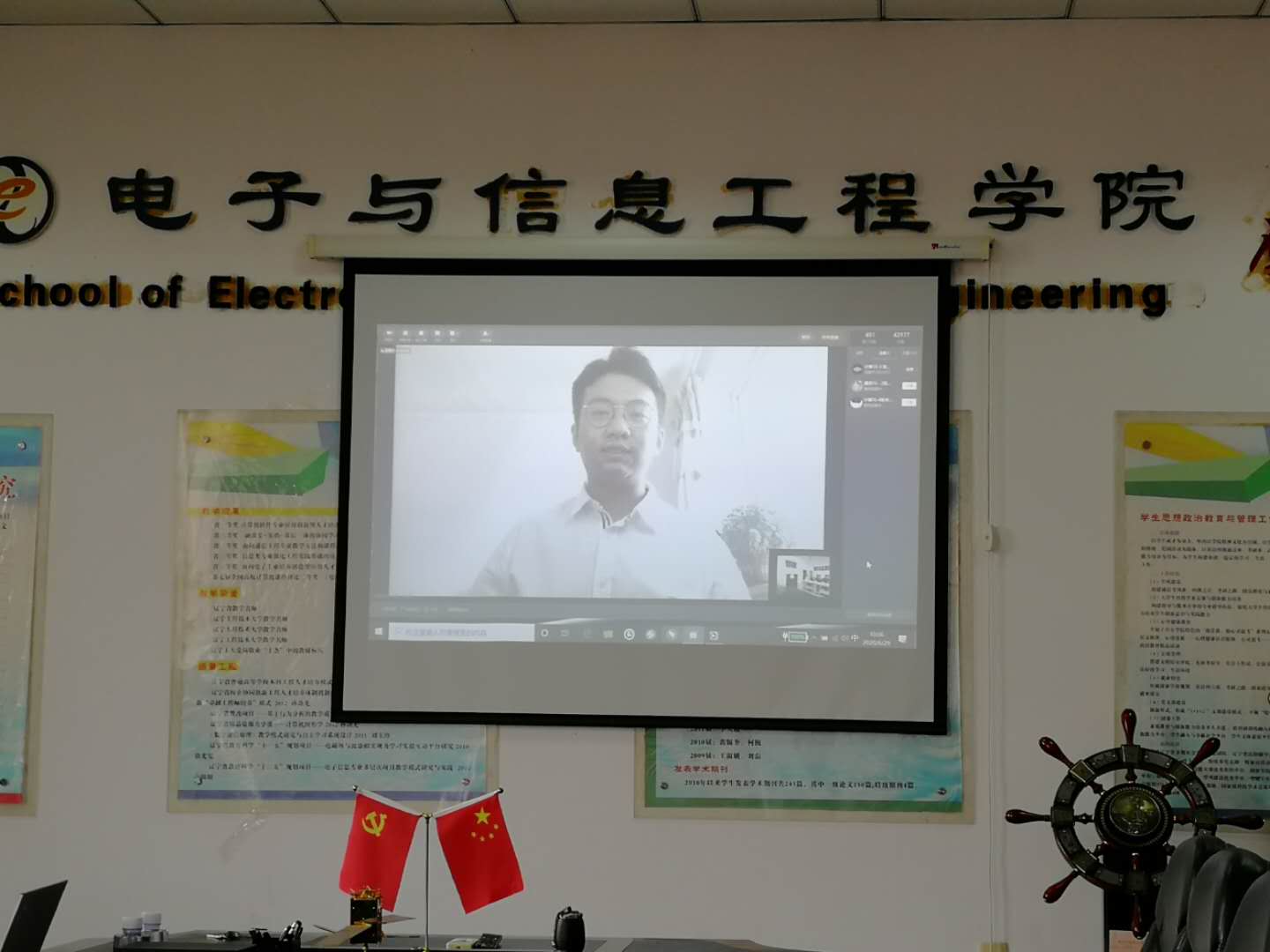 学工部主任马颖哲主持。尽管典礼是在线上举行,但是在校教师仍然精心布置了会场,以期为毕业生们营造浓厚的毕业氛围。