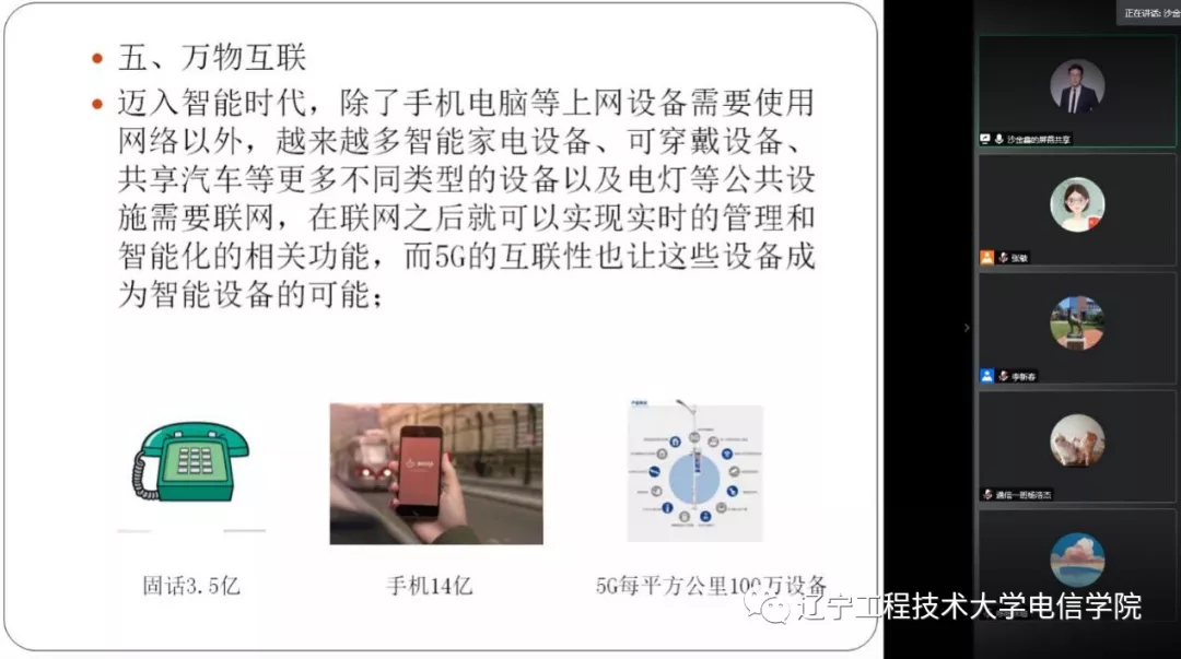2009级通信工程本科专业优秀校友,国家一级注册建造师。中国移动通信集团辽宁有限公司沈阳分公司高级电信机务员、工程师。职业资格考试品牌“盛京执考天堂”创始人。主讲一级建造师考试通信与广电实务科目。本次报告分为两大部分。第一部分为移动通信网络发展历史及应用,沙金鑫根据多年从事通信工程项目管理和教学经验,从移动通信网络发展40余年历史入手,通过大量实景图片展示第一代到目前的第五代通信网络和设备具有的功能和特点以及为人们提供的各种服务,介绍了常用的通信技术,讨论了5G时代对人们生活的影响。第二部分为通信专业职业规划,沙金鑫为大家介绍了通信工程专业毕业后的主要就业方向以及各个就业方向的特点,同时还为大家介绍了通信行业资质证书的应用价值及考取方略。报告内容详实丰富,通俗实用。报告后,沙金鑫与师生们展开热烈的互动,并为第一位提问同学送上精美礼品一份。
