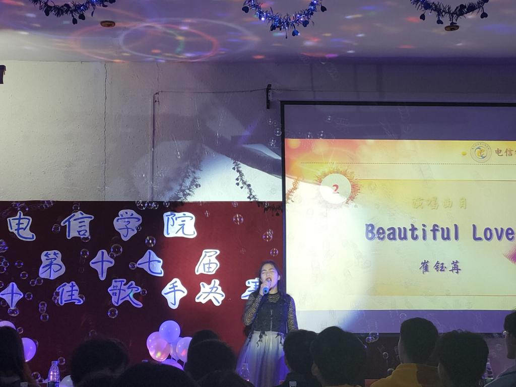 比赛分为两轮进行,第一轮十位选手经过角逐取分数高的前六名进入二轮比赛。脱颖而出的二轮选手将再次演唱歌曲,争夺最后名次。比赛中,选手们各展歌喉、表现出色。每一位参赛选手将自己的实力发挥至最高。听众更是积极响应,伴随着歌曲声婉转流连,呐喊声、掌声接连不断。选手的精彩表现,配上现场的活跃氛围,赛场更是高潮迭起。其中选手刘建男演唱的《风吹麦浪》唱出了喧嚣的城市中人们对那份单纯而美好的情感的眷恋,呼唤人们记忆深处最纯净的声音,就如同风吹麦浪,抚平我们躁动的心。每句歌词感情至深,给予观众强烈的代入感,台下掌声如雷。一轮结束,进行抽奖活动,令现场的氛围愈加活跃。比赛结束时,吴老师和各组织主席依次为各奖项选手颁奖,并绽放礼筒,为此次比赛画上一个圆满的句号!
