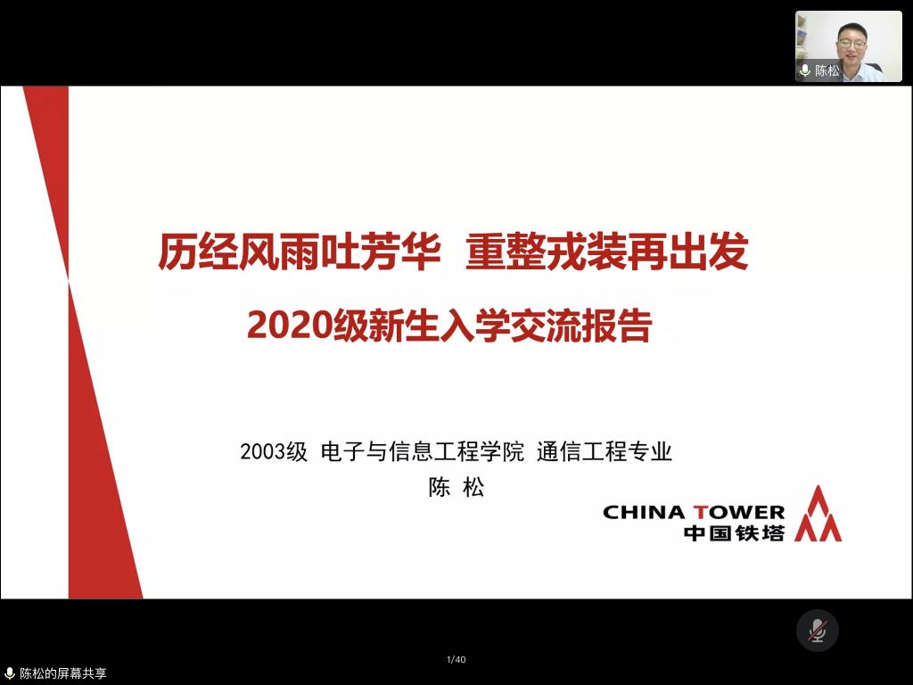 通信工程专业新生做了题为“历经风雨吐芬芳,重整戎装再出发”的报告,分享励志故事,交流工作体验,分享工作心得,畅谈人生规划。报告会由学生工作部主任马颖哲老师主持,通信工程专业全体新生在线聆听。