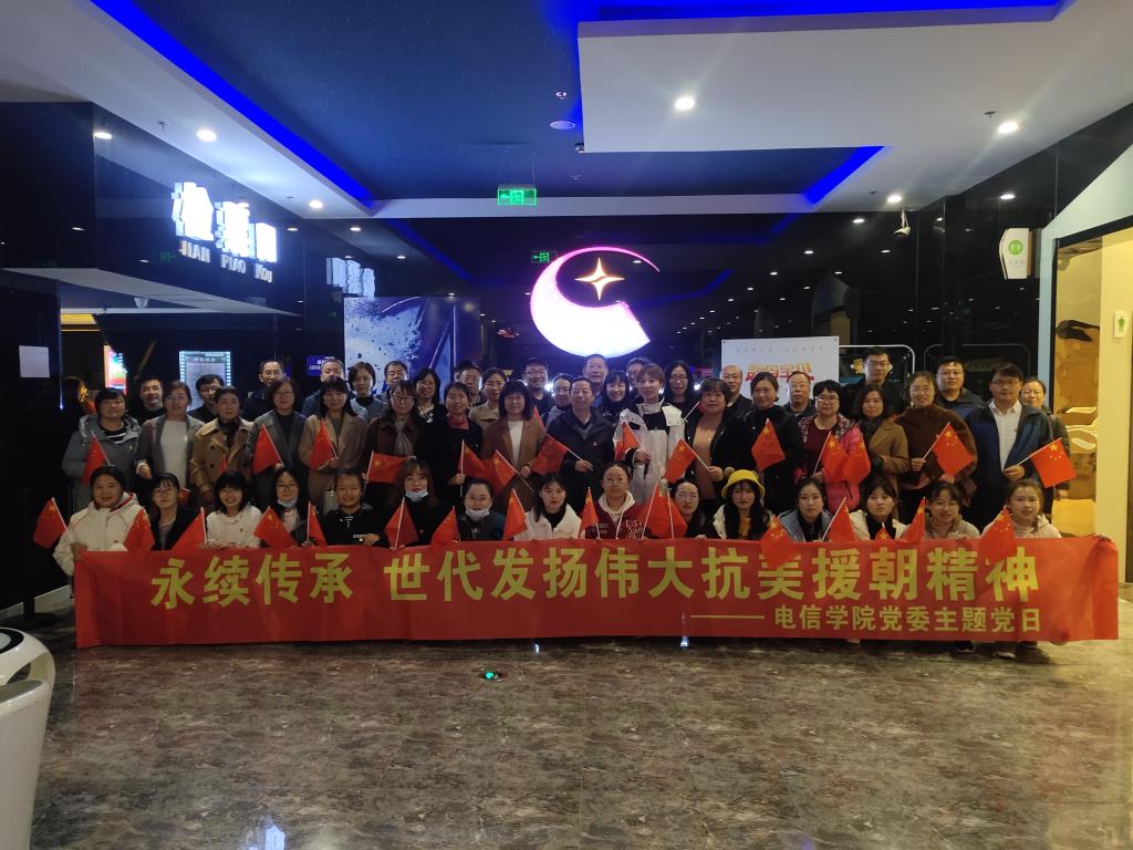 党委书记王永贵为师生党员讲述了70年前为了保卫和平、反抗侵略,中国共产党和新中国政府毅然作出抗美援朝、保家卫国的历史性决策,英雄的中国人民志愿军高举正义旗帜,同朝鲜人民和军队一道,舍生忘死、浴血奋战,赢得了抗美援朝战争伟大胜利,为世界和平和人类进步事业作出巨大贡献。接下来师生党员共同观看影片《金刚川》。影片展现了1953年抗美援朝战争进入最终阶段,志愿军在金城发动最后一场大型战役。为在指定时间到达,向金城前线投放更多战力,志愿军战士们在物资匮乏、武装悬殊的情况下,不断抵御敌机狂轰滥炸,以血肉之躯一次次修补战火中的木桥。一段鲜为人知的历史,在暗流涌动的金刚川上徐徐展开。