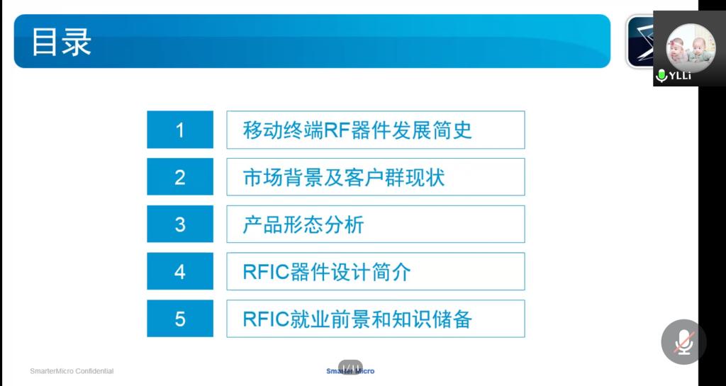 本场讲座,李咏乐校友围绕移动终端RF器件发展简史和市场背景及客户群现状等内容展开,分析了产品形态,重点介绍了RFIC设计过程。最后,李咏乐校友对RFIC就业前景做了分析,针对同学的现状给出了从事RFIC所需的知识储备。