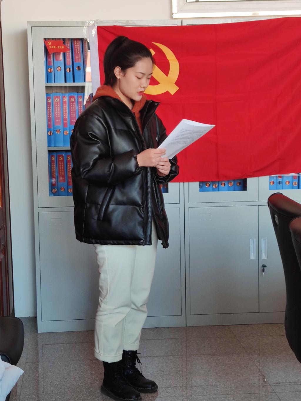 大会第一阶段是第一党支部书记赵金源同志和学生第二党支部书记叶静老师介绍大会主要流程及本次发展党员的综合考察情况。接下来各发展对象逐一宣读入党志愿书,介绍人发表介绍人意见,正式党员无记名投票进行表决。经过监票计票,李岳霞等20名发展对象均已全票赞成通过大会讨论,同意接收为中共预备党员。最后学生第二党支部书记叶静老师对大会做了总结,并对新发展的预备党员提出要求,希望他们在今后的学习和工作中更加努力,做好党员模范带头作用,努力成为一名合格的党员,为党支部的建设和3377体育