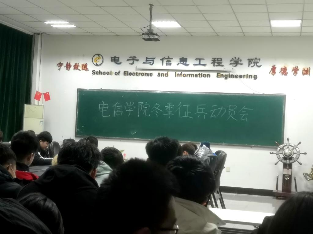 于12月10日晚17:15在静远四楼会议室开展冬季征兵动员会。参会人员有院团委指导教师吴汇辞、兼职辅导员范湘冀及各班班级代表。