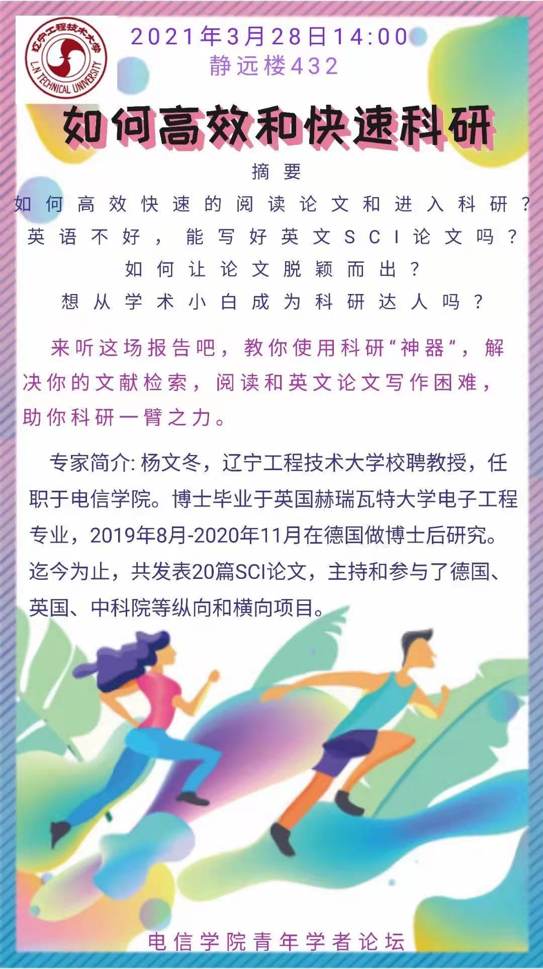 电子科学系校聘教授杨文冬博士做“如何高效和快速科研”的专题讲座。本次讲座由研究生社团学术部成员曹京涛主持,3377体育app官方版