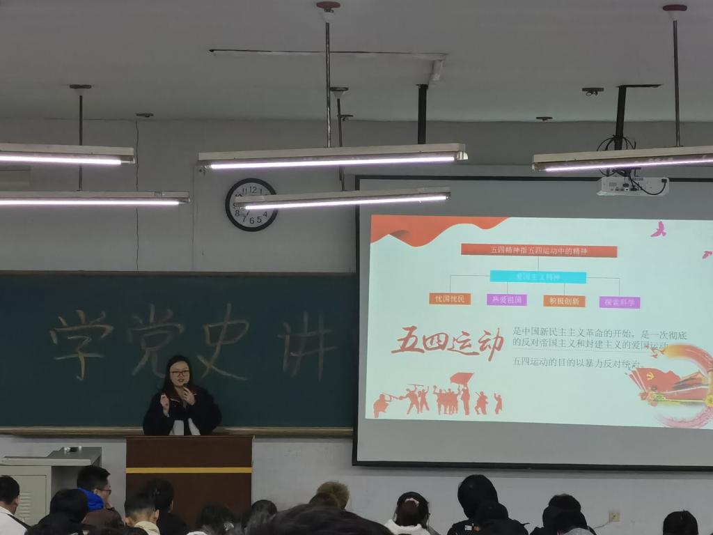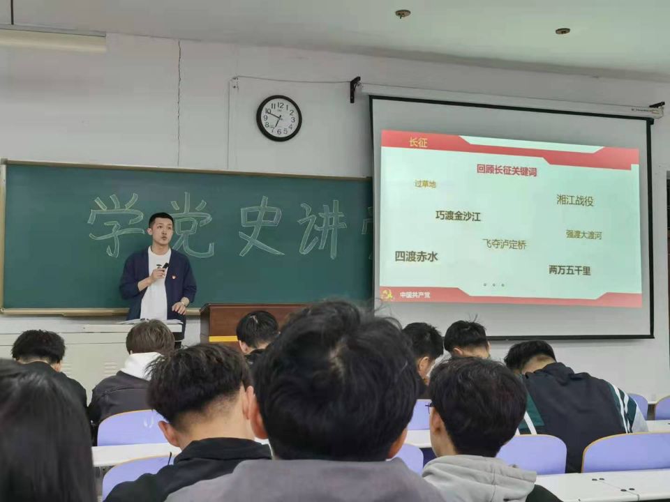重温党的百年光辉历程,深刻领悟党的初心使命。李佳衡与孙硕男同学详尽叙述梳理了中国共产党百年的发展历程,在场同学也随着他们的讲述一同追溯历史,不断重温中国共产党的初心和使命。归去来兮,斯人已去,长征往矣,精神不灭,刘香江老师细致为同学们讲述了七十年前那漫长的征途以及途中那些催人泪下的故事,令同学们无不感叹长征精神的真谛。吴汇辞老师则讲解了五四运动及其精神内涵,号召处在海晏河清时代的我们,更应继承五四精神,满怀报国之志,为祖国的新一轮发展添砖加瓦。