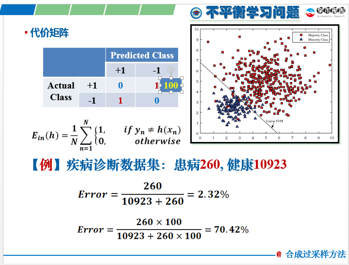 校聘教授,研究方向为机器学习。ACM/CCF/CAAI会员。会议EITCE2020TPC,CCCIS2021 PC,期刊INS/KBS/ASOC、会议CCDM2020、FSDM2018论文评审人。主持包括国家自然科学青年基金在内的多个项目。冷老师的讲解通俗易懂,引人入胜,席间多次以生动的生活例子来映射晦涩难懂的专业问题,使得同学们在一片笑声中恍然大悟。冷老师首先介绍了机器学习的概念,通过疾病诊断数据集中患病人数为少数的例子,引入了机器学习中的不平衡问题,并指出这种“不平衡”背后往往隐藏着代价敏感问题。在生活中的信用卡违约标识以及网络入侵检测中,机器学习都将面临这种不平衡。接下来,报告着重介绍了求解不平衡问题的合成过采样方法,同时指出现有方法存在的局限性。最后,提出一种新的带有超盒约束的HC-SRM算法,并通过实验验证了该方法的有效性。