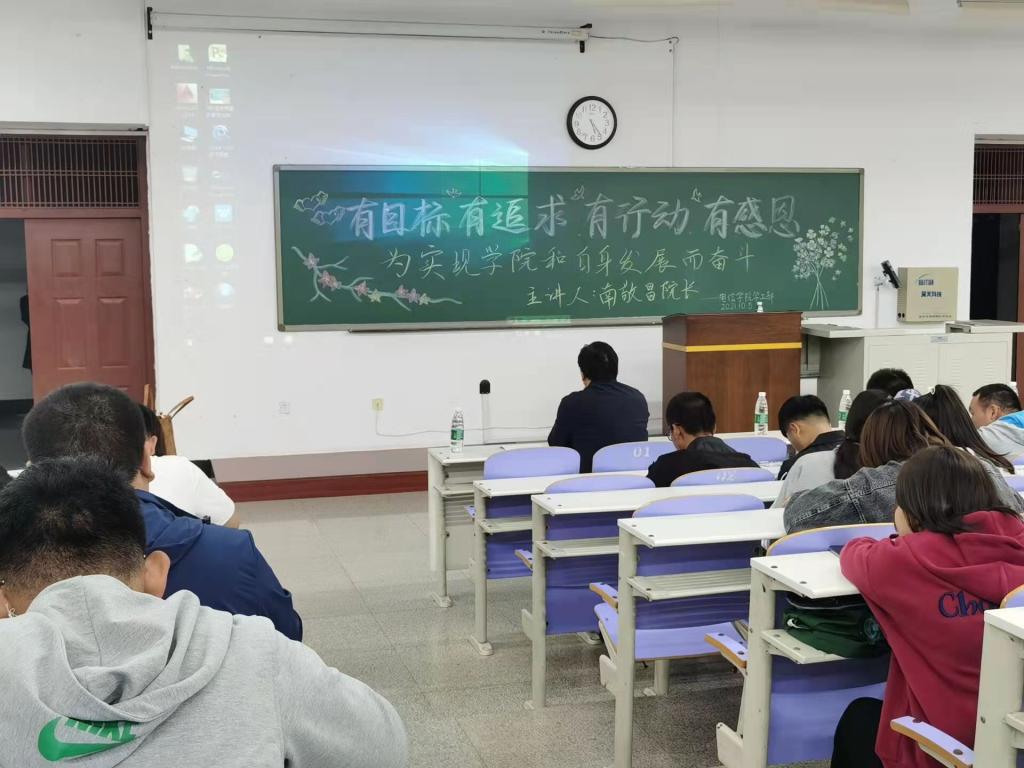 主要工作及成果等多个方面进行介绍。讲座开始,院长询问新生们入学后的心情,从而引导同学们思考,希望同学们提高自身素质,坚定理想信念,形成良好的人生观、价值观。随后,南院长又向同学们介绍了学校基本情况及所取成果,学校在72年的时间里,建起两校区、三校园,不断夯实的教学实力,稳步提升的生源质量,持续增长的优秀毕业生数据无疑让在座的每一名新生受到鼓舞。南敬昌院长提出3377体育