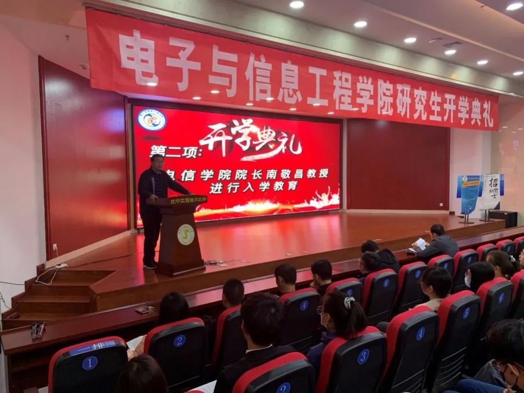 最后,副院长高明明宣布2021级硕士研究生新生开学典礼圆满结束,同学们以热烈地掌声欢送院系领导与各位导师,同时也欢送着过去的自己,迎接崭新的自己,默默在心中承诺,一定不辜负老师们殷切的期盼,争做一个有志向、有胆量的辽宁工大人!