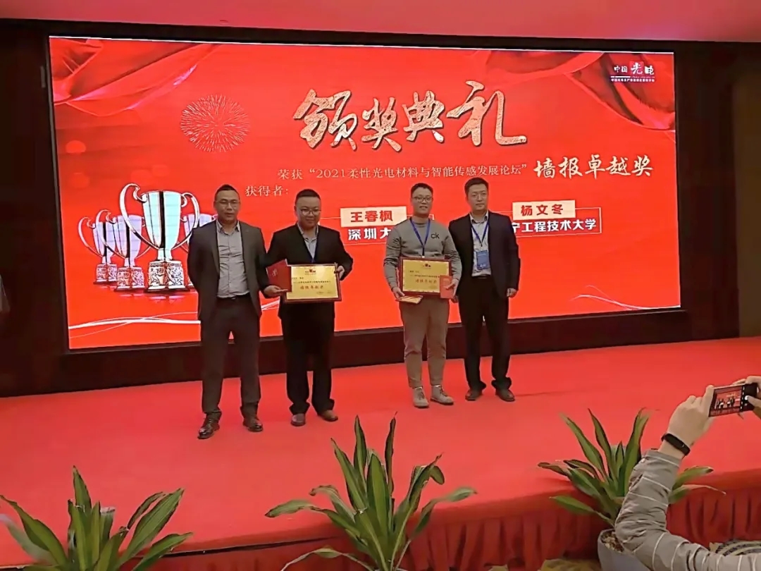 正在开展的一些研究,希望会后与各位学者多多交流。在墙报环节,杨教授获得了2021柔性光电材料与智能传感发展论坛教师组“墙报卓越奖”。