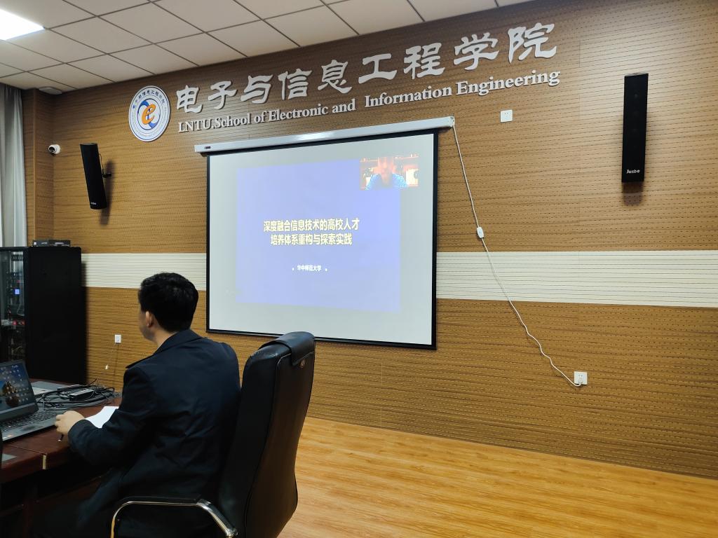 分党委副书记曹阳作《深度融合信息技术的高校人才培养体系重构与探索实践——国家级教学成果奖培育与申报体会》的报告。