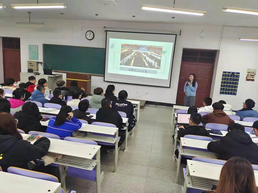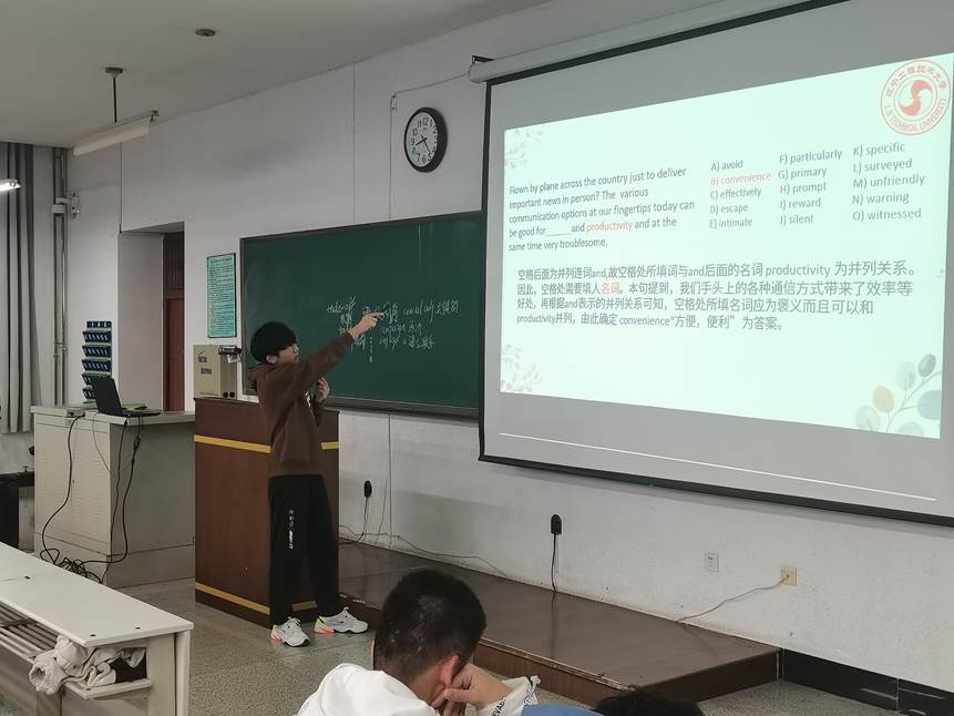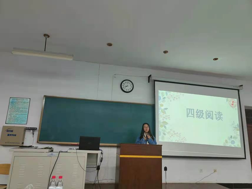 会议伊始,吴老师先带领同学们熟悉四级考试流程,从步入考场前的准备事项到交卷前需要核对的信息,详细介绍了每一环节,使同学们对考试过程及时间安排有了更清晰的认知,有利于大家适应考场气氛,增强自信心。之后,吴老师讲解了近几年来英语四六级考试的特点,帮助同学们进一步明确考试重点;从真题实例出发,加深同学们的理解,使同学们掌握答题技巧和方法;备考过程不松懈、不放弃,要主动去挤海绵里的“水”,提高自身的复习效率。吴老师在讲台上激情澎湃地讲述着多年来指导学生通过四六级的经验,跟大家分享往届同学备考的真实经历,并强调虽然距离考试不到一个月时间,但“悟已往之不谏,知来者之可追”,无论何时开始备考都不能放弃。接下来,学业帮扶朋辈导师刘思寒和冯子宸同学分别对即将步入考场的同学给出了自己复习过程中的建议,言辞恳切,同学们也反响热烈,纷纷表示受益匪浅。