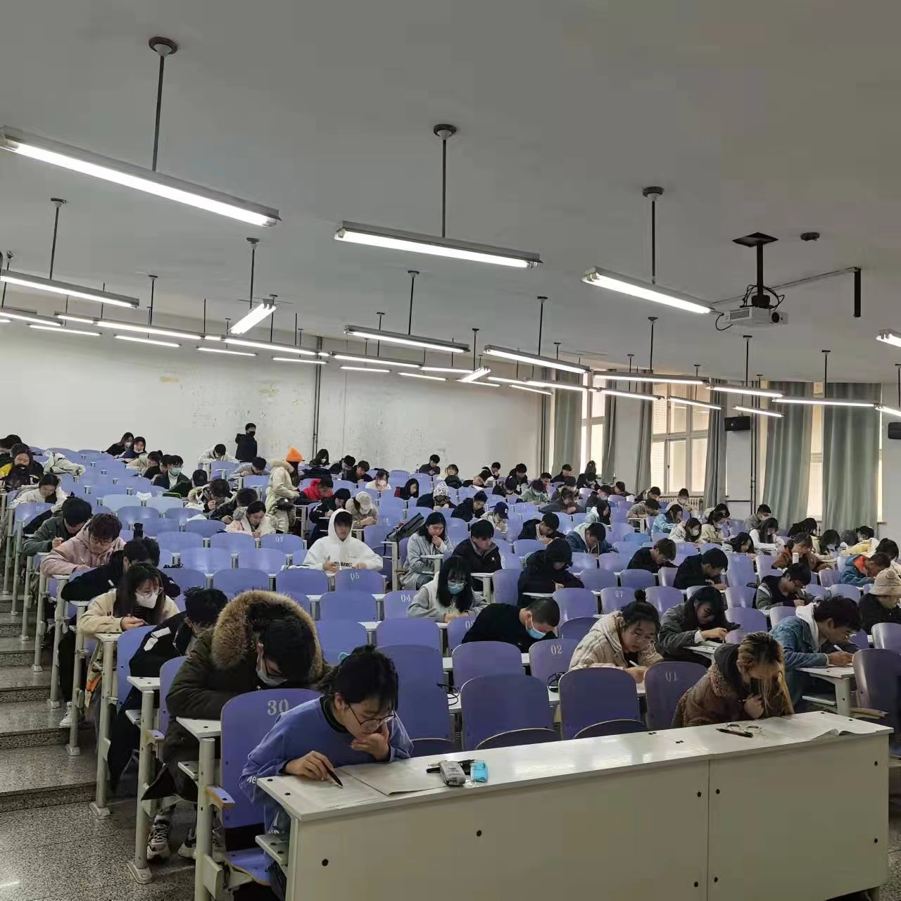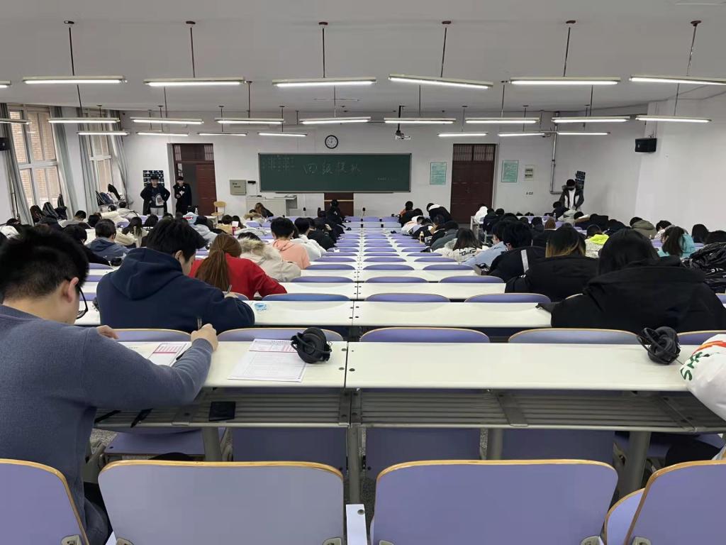本次模拟考试从试卷、答题卡、排版印刷、考场安排、监考到听力调试播放严格按照国家英语四、六级考试模式进行。开考前,同学们有序入场,在监考人员的安排下签到入座,所有考场均未出现迟到情形;随后监考人员向大家展示试卷的密封完整性,发放试卷后逐个核对考生证件,营造出真实的四、六级考试氛围;考试期间,同学们下笔有神,沉着作答,诚信应考,严格遵守考试规则;考试结束,所有考生将双手置于身体两侧,自然下垂,等监考人员收齐核对无误后方有秩序离开考场。