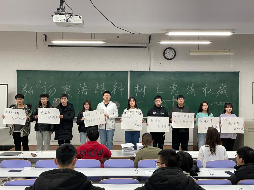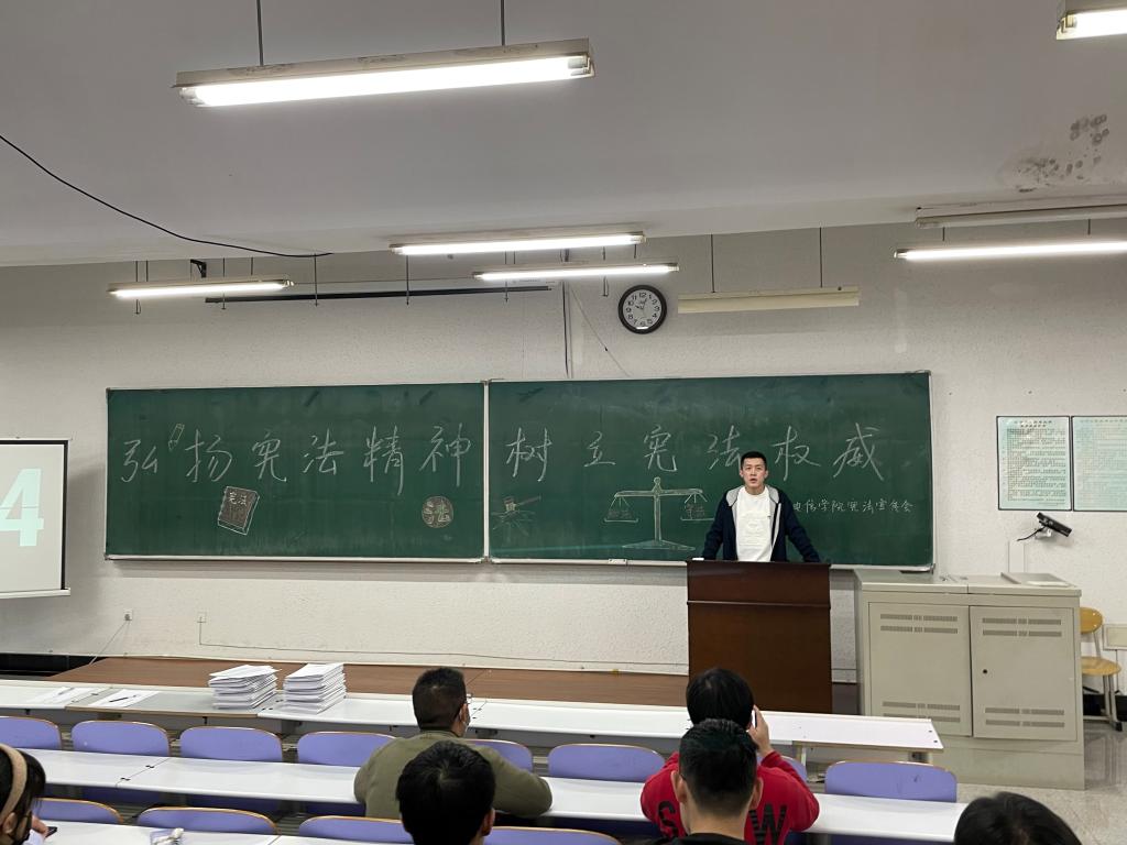 为了进一步促进同学们对法律知识的了解,提升同学们的法制观念,12月4日国家宪法日当天,学生党支部组织宪法专题学习活动,活动由学生第一党支部书记刘香江老师主持,组织员兼学生第二党支部书记叶静老师与200余名学生党员及学生骨干通过线上线下相结合的方式参加了此次活动。专题学习活动采取“宪法大家讲”、专题视频学习等方式开展,师生共同学习宪法,宣传宪法。通过学习活动,同学们了解到“国家宪法日”的由来,更加理解知法、守法的重要性,并纷纷承诺要从身边小事做起,自觉做到知法、懂法、守法、护法,为推进依法治国、建设和谐社会做出自己应有的贡献。