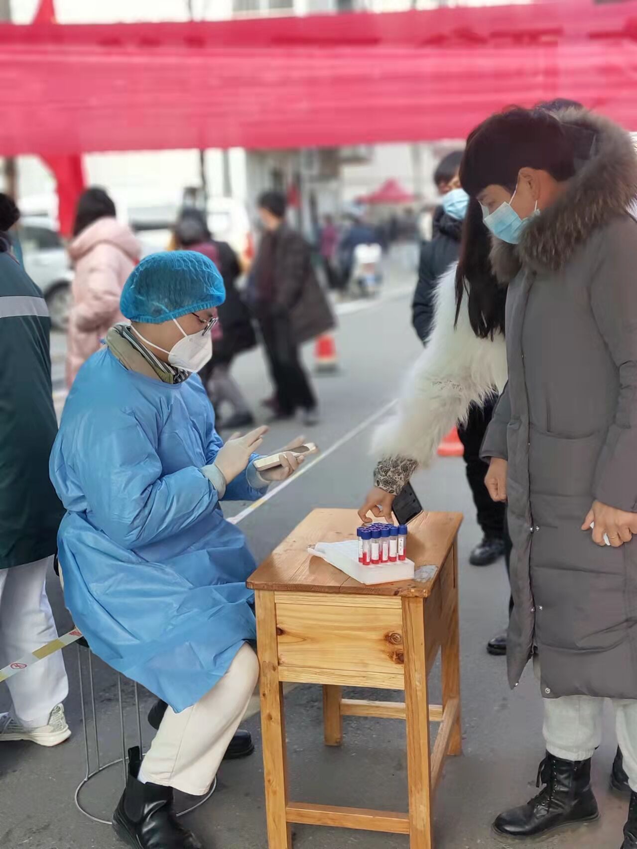 计算机科学与技术专业2019级本科生,寒假返乡,在河南省栾川县社区报备并居家隔离之后,因疫情严峻需要全县进行全员核酸检测,身为一名中共预备党员的谢炎哲积极地参与到家乡的抗疫防疫工作。期间,谢炎哲主要负责待检人员的信息录入、核酸检测试管分发和秩序维持工作。除此之外,谢炎哲还记录重点区域消毒记录,确保点位精准、时间有序,不留死角。虽然天气寒冷,但是乡亲们团结一心并积极配合防疫工作,使得防疫工作顺利进行。只要我们团结一心,不畏艰难,一定会战胜这次疫情。