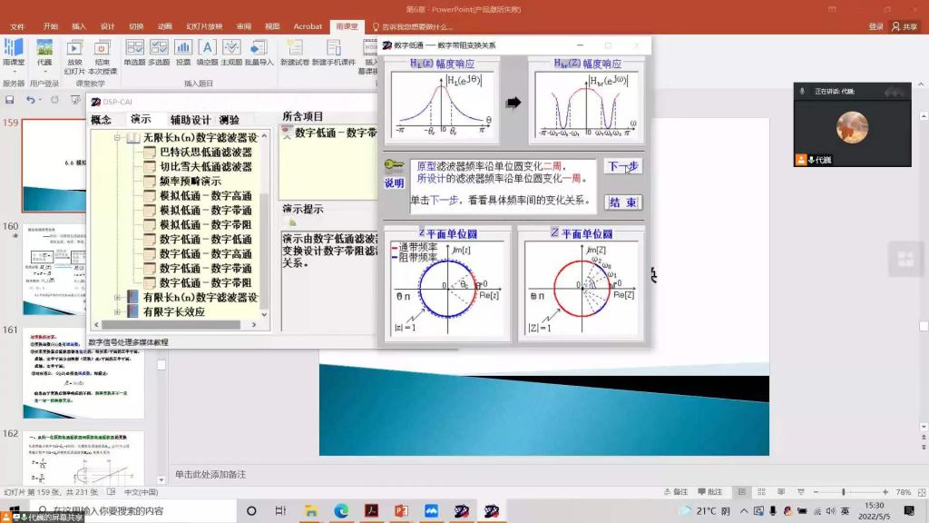 政策,针对《数字信号处理》课程理论较抽象、内容较枯燥、公式较多等特点,总结本门课程的线上教学经验,合理安排教学设计,保证了线上教学的质量。