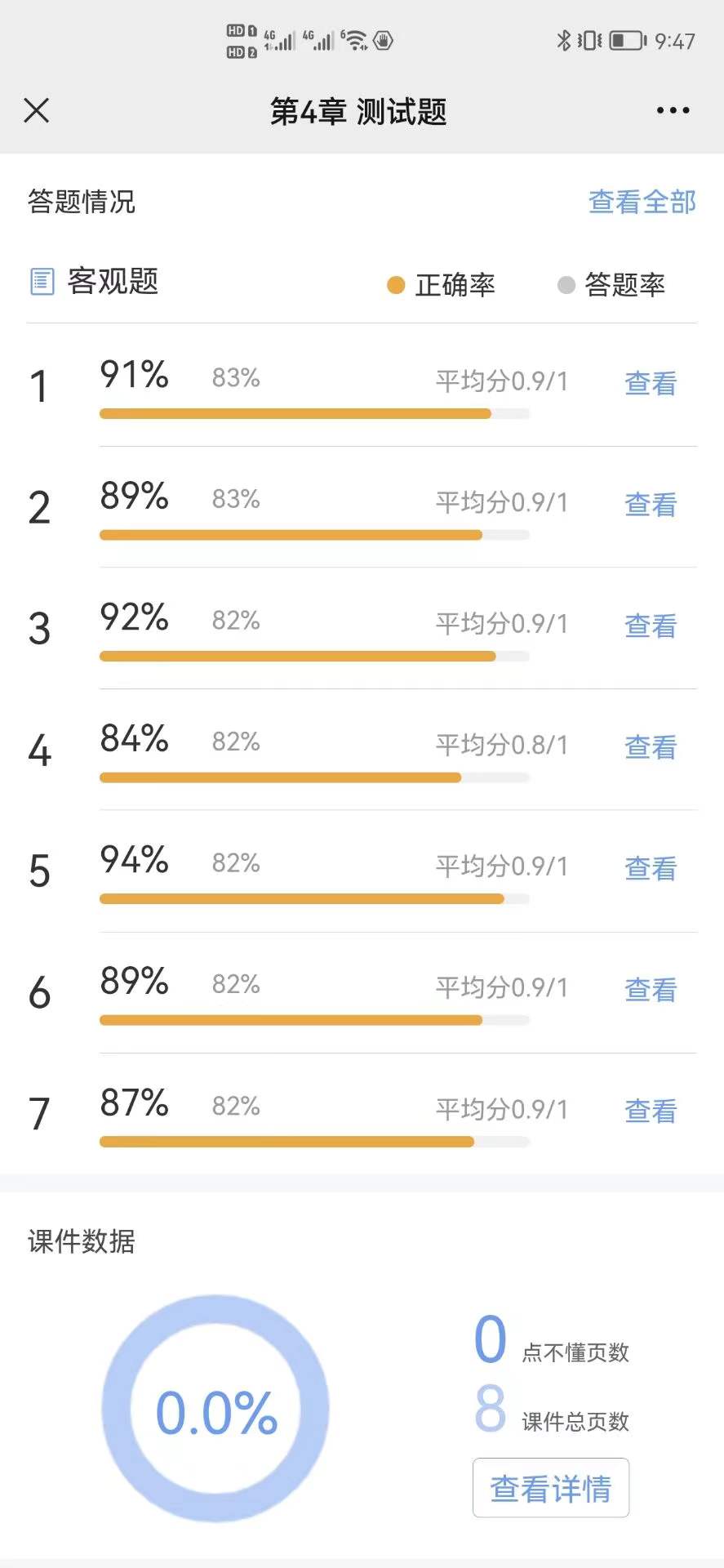 通过雨课堂在线布置作业,设置提交作业截止时间后发布,根据答题人数及正确率检验学习效果;课后布置课后题巩固所学知识点。另外,布置综合训练,其中包括验证性实验和设计性实验三个项目,由易到难,加深学生对知识内容的理解,提高学生实际动手能力。