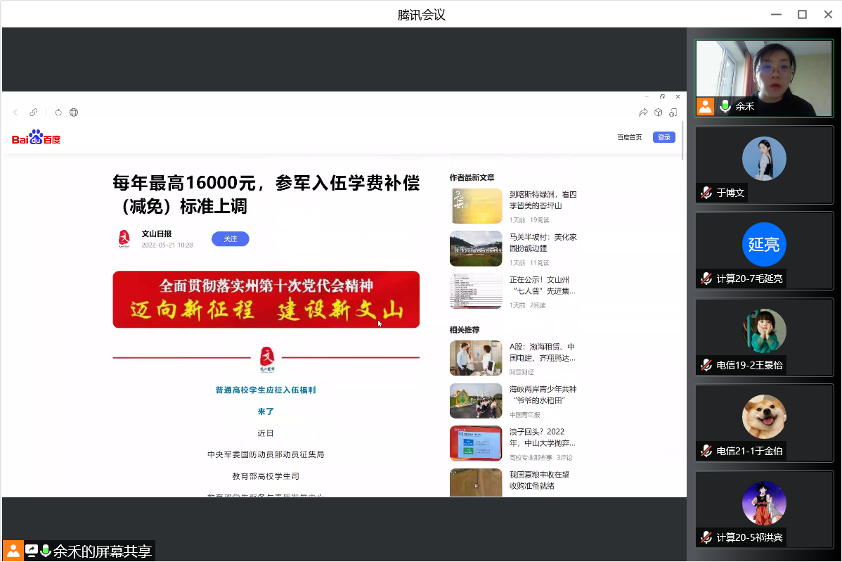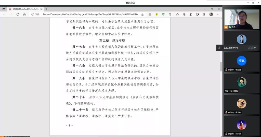 组织召开了大学生征兵宣传教育及入伍动员线上会议,各班级负责征兵宣传的学生骨干、寝室长和有入伍意向的同学共近百人全程听会,会议由3377体育
