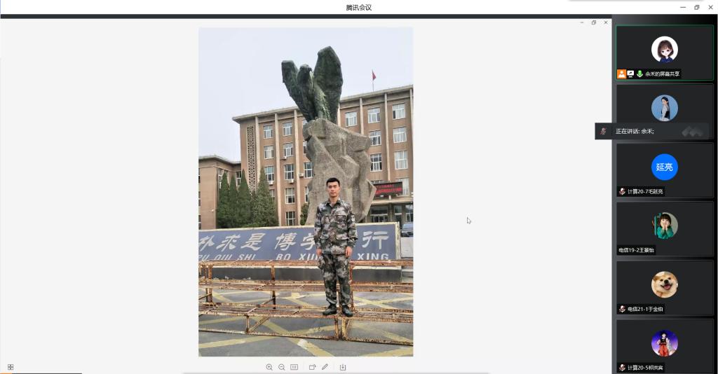 还邀请了退伍的大学生计算18-8班菅赛赛同学谈了当兵感悟体会。菅赛赛同学从不同角度讲述了火热的军营生活,分享了自己在部队凤凰涅槃的历程。不经一番寒彻骨,怎得梅花扑鼻香。入伍的宝贵经历让他收获颇丰,成长迅速。在校期间他多次被评为校三好学生等荣誉,获得辽宁省优秀毕业生称号。在部队服役期间,曾获得两次嘉奖、一次优秀义务兵等荣誉。目前已经确定在克拉玛依市烟草公司参加工作。