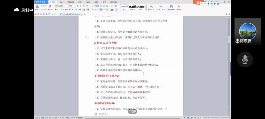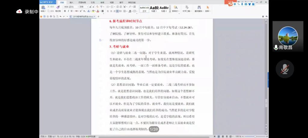 南敬昌院长首先以“为什么选择考研”、“什么人适合考研”进行讲解,引入本次大会主题,让更多的同学了解考研的目的意义及适宜的群体。接着,南院长对关于报考学校及学硕专硕的抉择也给予了一些建议,并详细说明了考研报名流程与时间节点。