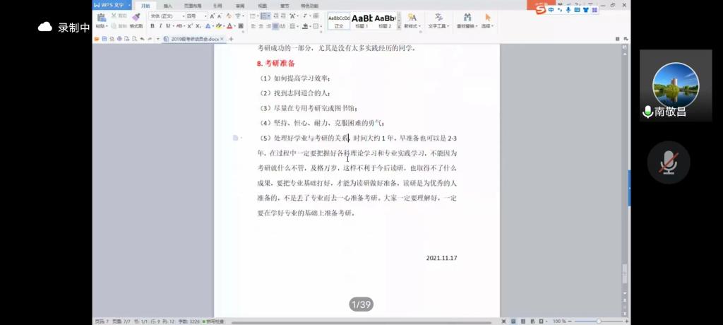 于2022年7月11日晚上19:30,召开了2019级学生考研动员会。南敬昌院长主讲,张洋老师主持,19级与20级全体班干部及有考研意向学生共350人参会。由于疫情原因,本次大会于线上召开。