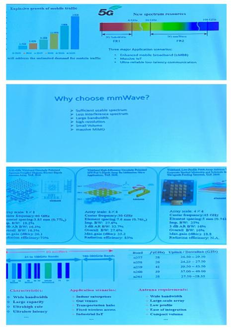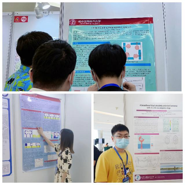 韩欣欣、王纪禹两位同学分别将已录用论文《应用于5G FR1系统的高隔离MIMO天线设计》、《一种侧馈式四单元UWB-MIMO天线的设计》在NCMMW会场中进行宣讲;杨鹏举同学将论文《Abroadbanddualcircularlypolarizedantennawithdoubleincompleterings》在ICMMT会场中进行宣讲,并与会同学讨论。此外,团队成员曹京涛所写《一种应用于5G通信的对拓平面渐变槽线天线》、赵久阳所写《一种小尺寸低成本的超宽带天线设计》、张凯威所写《双频可重构谐波抑制功率放大器》在会场中也以海报形式展出。