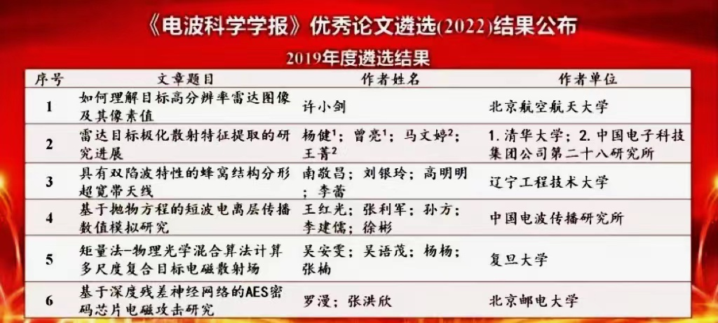 2022年8月24日,《电波科学学报》优秀论文遴选(2022)公布结果,我校3377体育