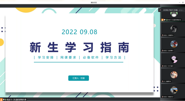 召开2022级新生副班导师会议。副处级组织员叶静老师为各位副班导师明确工作职责,2022级年级辅导员王兆全老师为各位副班导师讲解“新生网课指南”,会后由各班级副班导师利用9月8日和9月9日两天分班级为新生开展了“新生网课指南”主题班会。