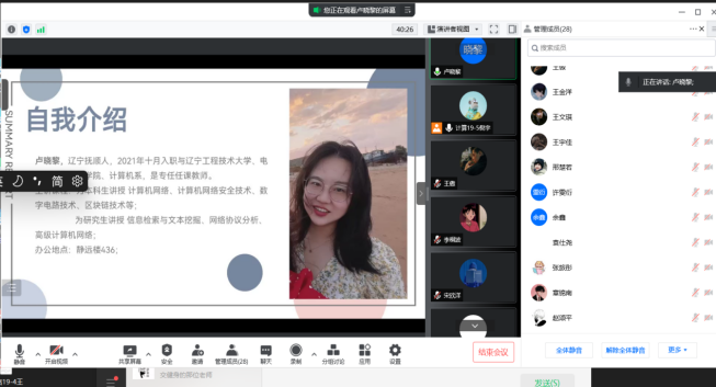 师资力量、教学理念和线上教学的注意事项等,督促并激励同学们积极对待自己的学业,努力提高自己各方面的能力和素质,珍惜青春时光,明确今后努力的方向,努力提高自己各方面的能力和素质,为自己大学毕业后的发展做好充分准备。会议最后,各位班导师提醒同学们要加强疫情防控意识,严格遵守属地疫情防控要求。