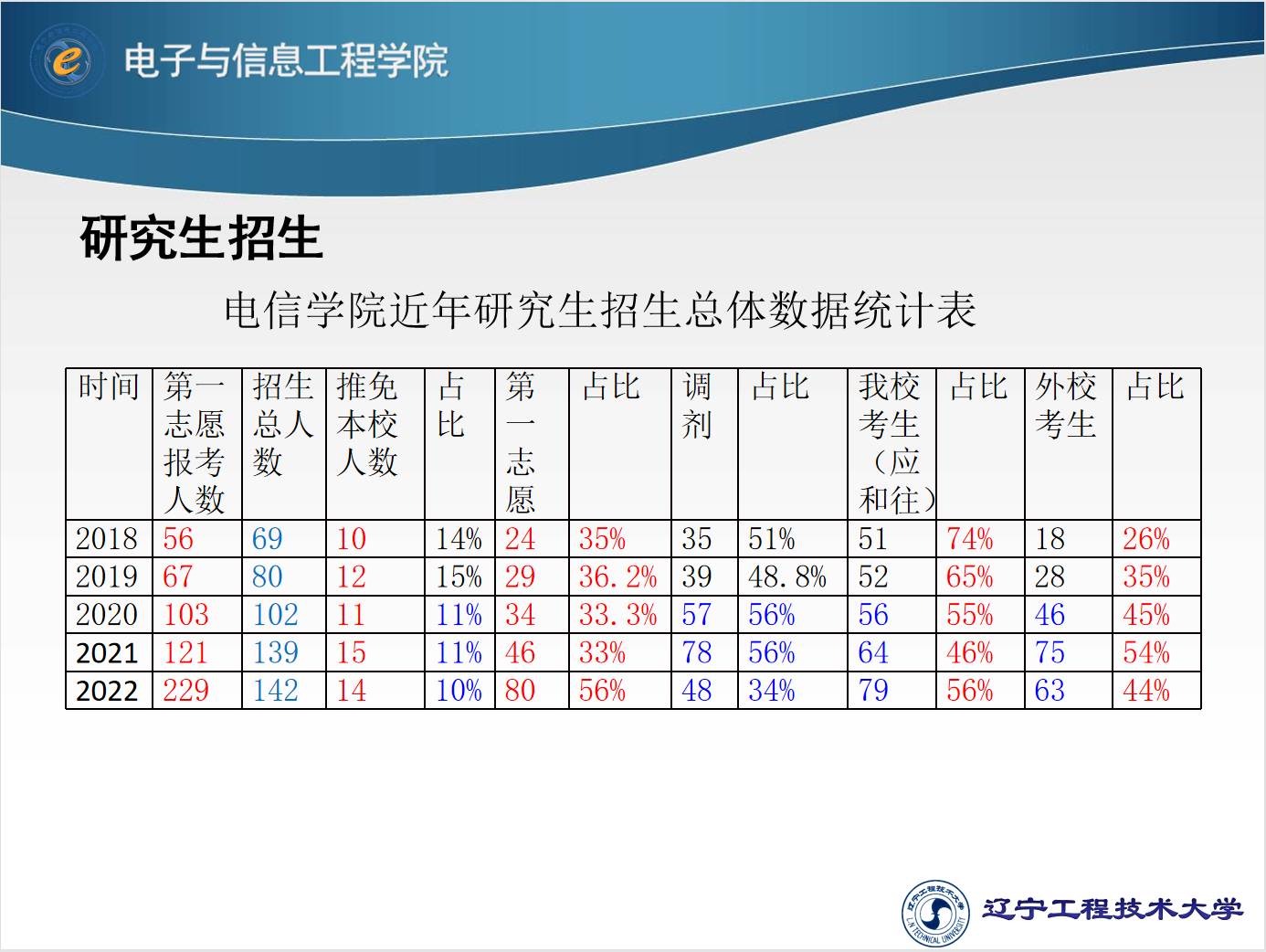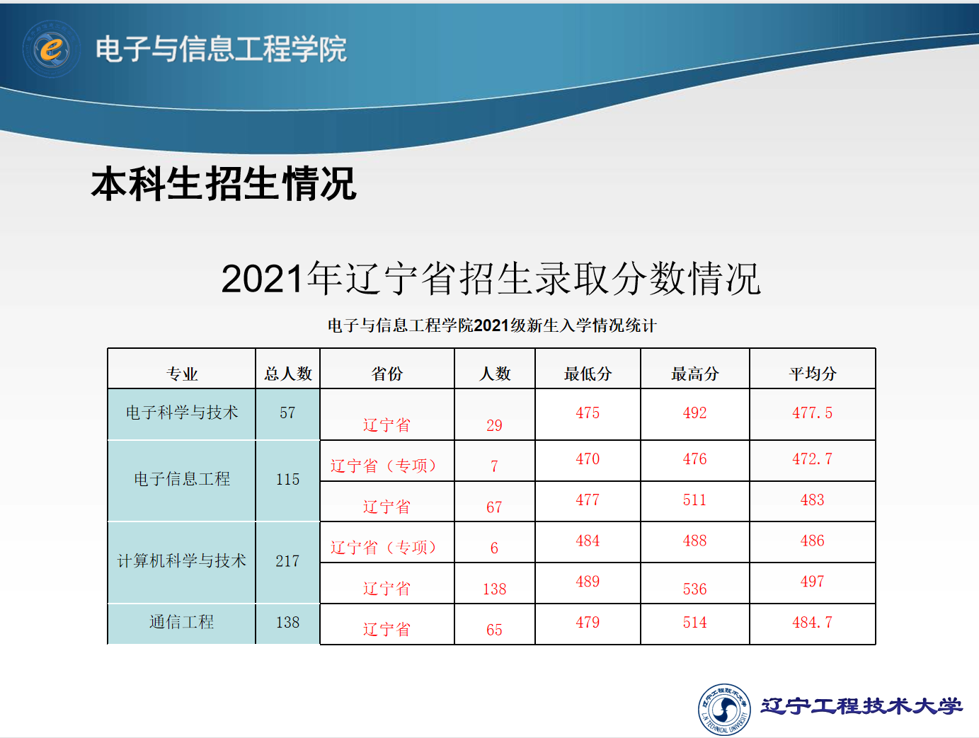 现有教师72人,其中博士学历教师占教师总数一半以上,是一支能力强、素质高的师资队伍。在学科平台建设方面,现有两个一级学科硕士学位授权点,分别为信息与通信工程、计算机科学与技术;一个电子信息类专业硕士学位授权领域,分通信工程、新一代电子信息技术、计算机技术三个方向;拥有“辽宁省无线射频大数据智能应用重点实验室”省级重点实验室,“数字化矿山装备工程技术研究中心”和“矿山安全数据工程技术研究中心”两个省级工程中心,“矿山大数据”和“智能无线射频”两个校级创新团队,5个研究所和多个校内学术组织和实践基地。在专业建设方面,拥有计算机科学与技术、通信工程、电子信息工程、电子科学与技术四个本科专业,本硕博在校学生2500多,招生人数和生源质量逐年提升。