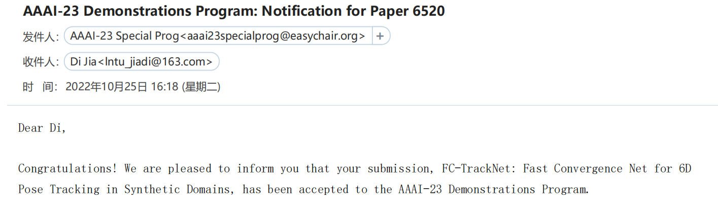 本次被录用的论文为“FC-TrackNet: Fast Convergence Net for 6D Pose Tracking in Synthetic Domains“。该项研究成果由我3377体育
