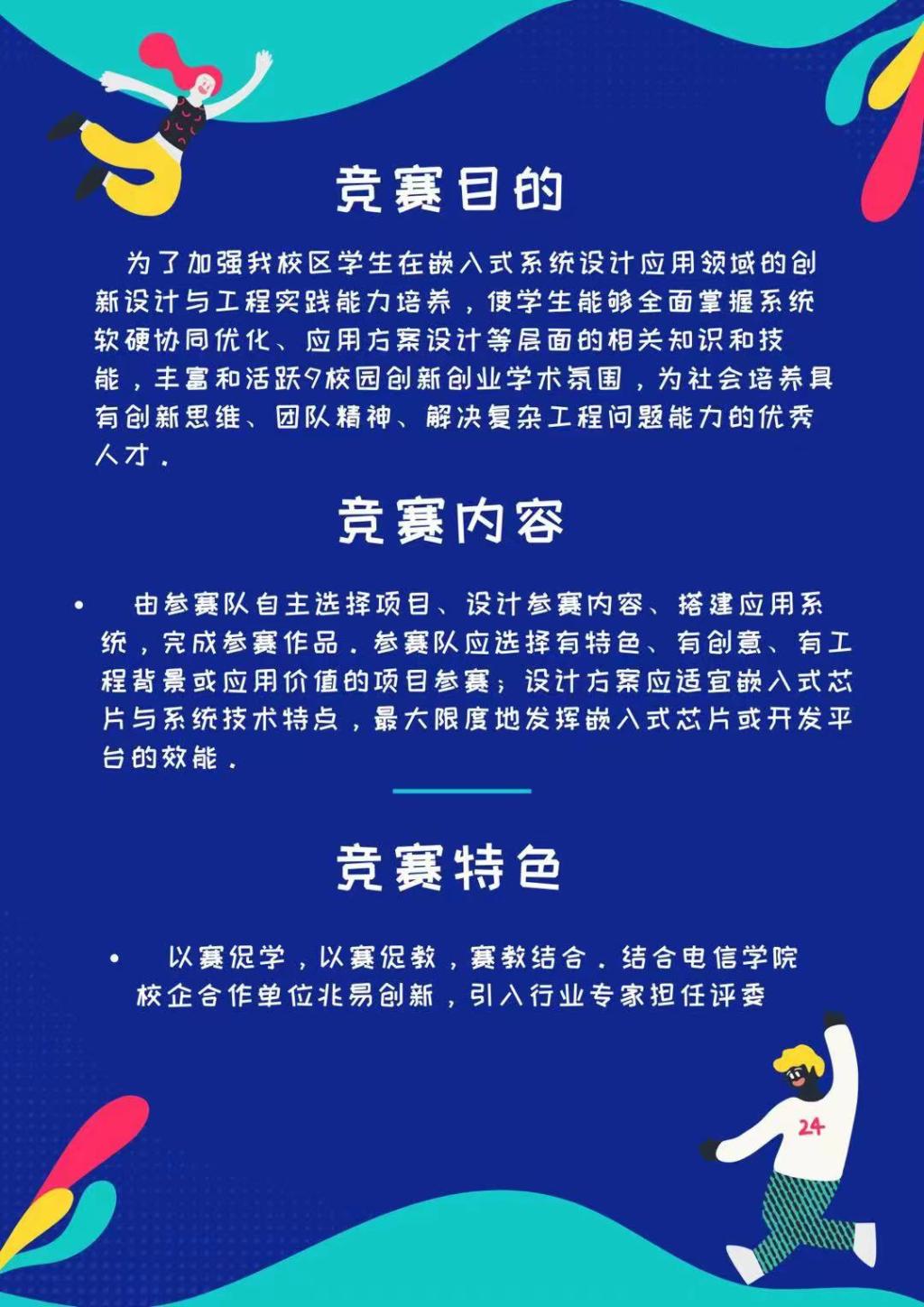 为了加强我校区学生在嵌入式系统设计应用领域的创新设计与工程实践能力培养,使学生能够全面掌握系统软硬协同优化、应用方案设计等层面的相关知识和技能,丰富和活跃校园创新创业学术氛围,为社会培养具有创新思维、团队合作精神、解决复杂工程问题能力的优秀人才。3377体育